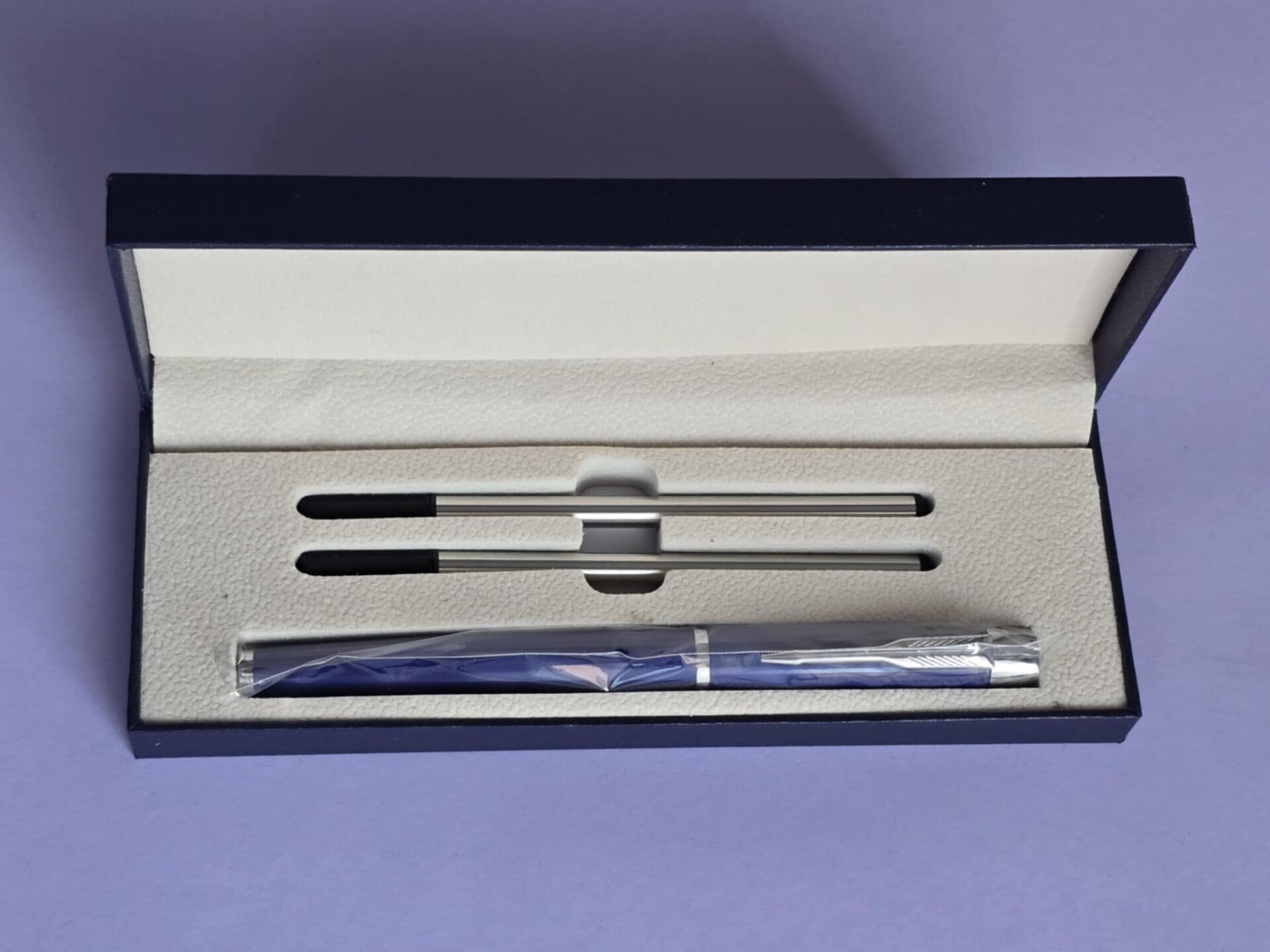 Këtë stilograf e gjeni në dy ngjyra: e hirtë dhe e kaltër.
